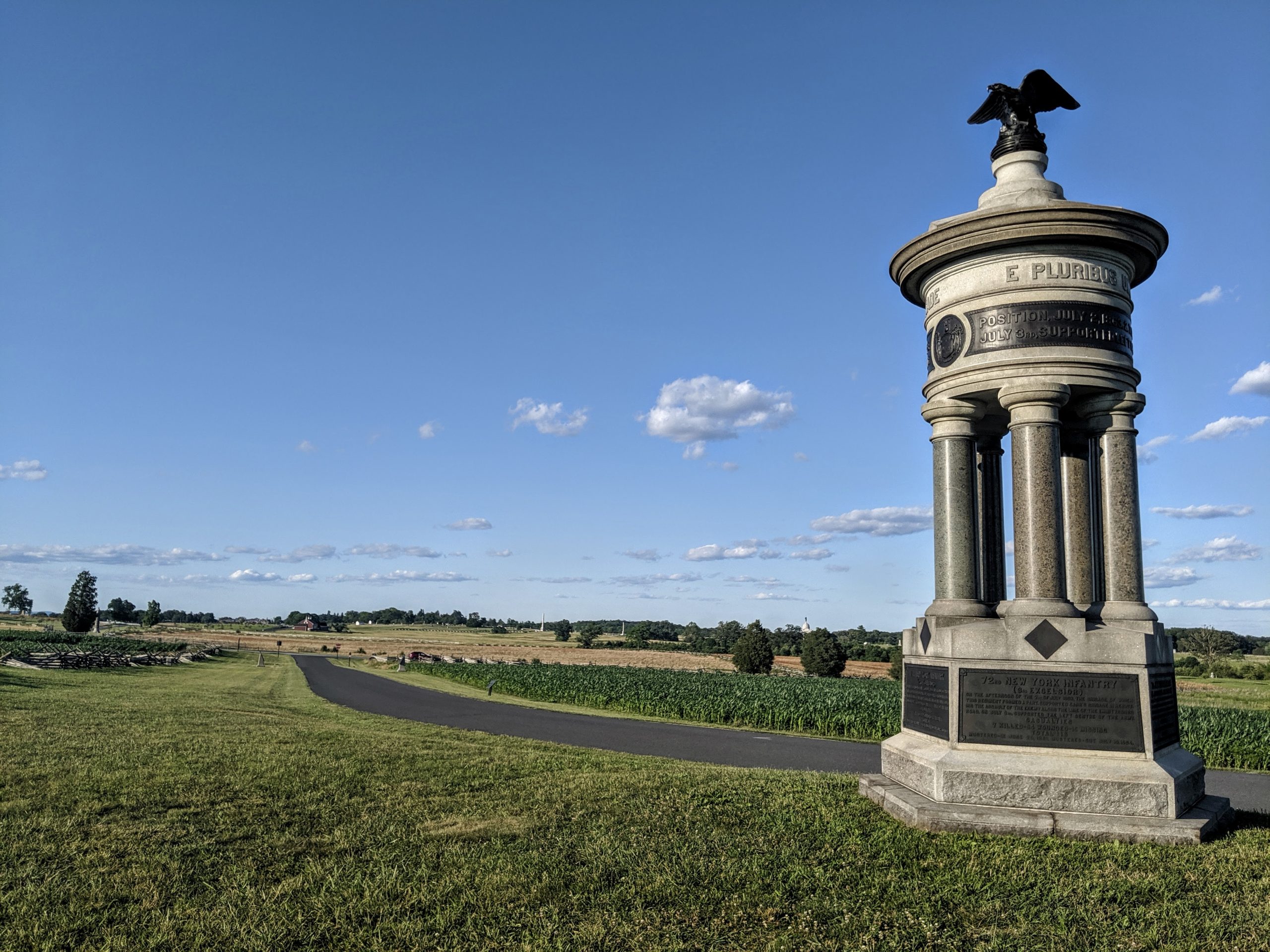 The Gettysburg National Military Park encompasses nearly 6,000 acres with over 26 miles of roads connecting major battlefield landmarks including Cemetery Hill and the “High Water Mark”. There are over 1,300 monuments, markers and memorials, 400 cannons and numerous historic houses.